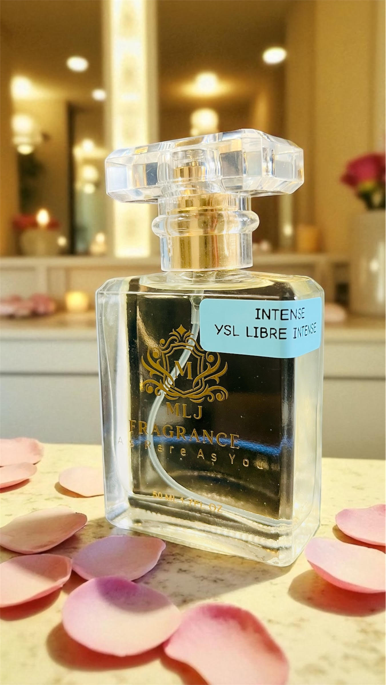 INTENSE Inspired by Libre Intense by Yves Saint Laurent Top notes are Lavender, Mandarin Orange and Bergamot; middle notes are Lavender, Tunisian Orange Blossom, Jasmine Sambac and Orchid; base notes are Madagascar Vanilla, Tonka Bean, Ambergris and Vetiver.